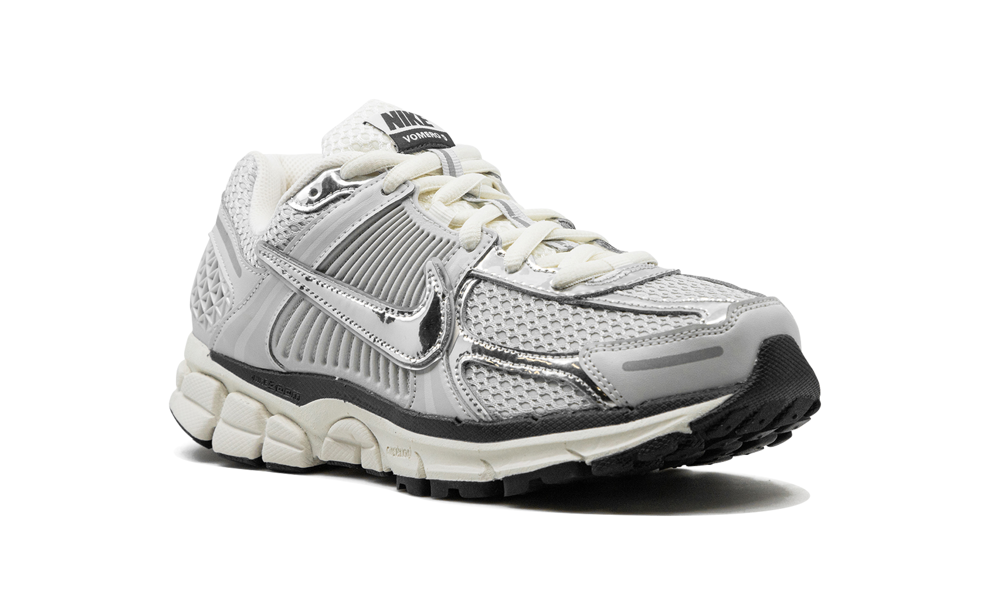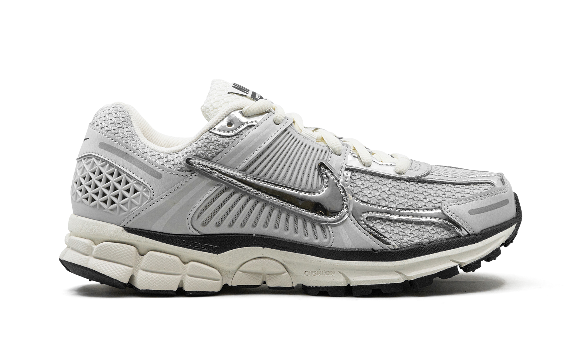 The Nike Zoom Vomero 5 “Chrome” is a mostly grey-based colorway of the retro running shoe. The Zoom Vomero 5 was first released in 2010 as a performance sneaker before becoming a lifestyle option as part of the Y2K sneaker trend. On the “Chrome” colorway, the shoe features a Photon Dust mesh construction with grey and Chrome overlays. A flashy Chrome Swoosh can be found on the sides. “Nike Vomero 5” branding appears on the tongue. A Zoom Air cushioning unit within the Sail-colored foam midsole provides all-day comfort. Chrome